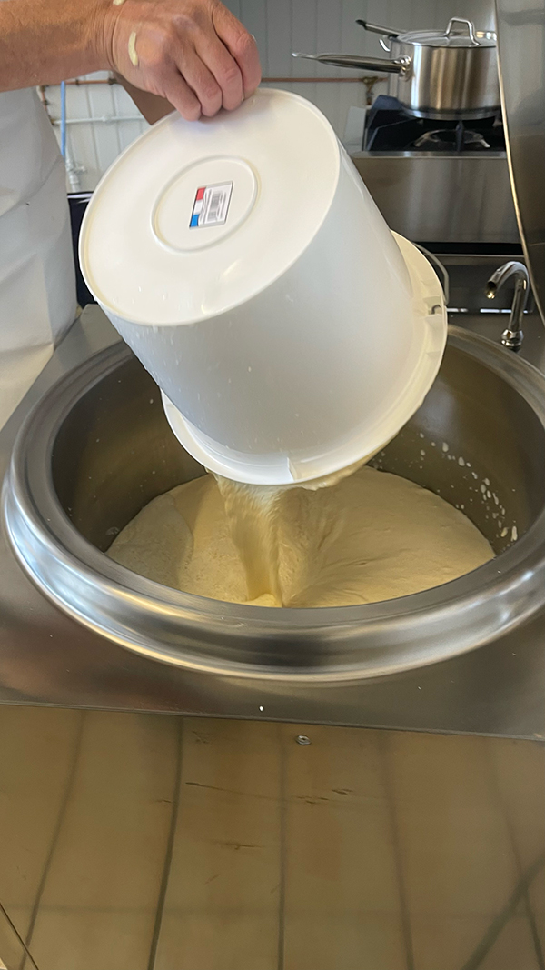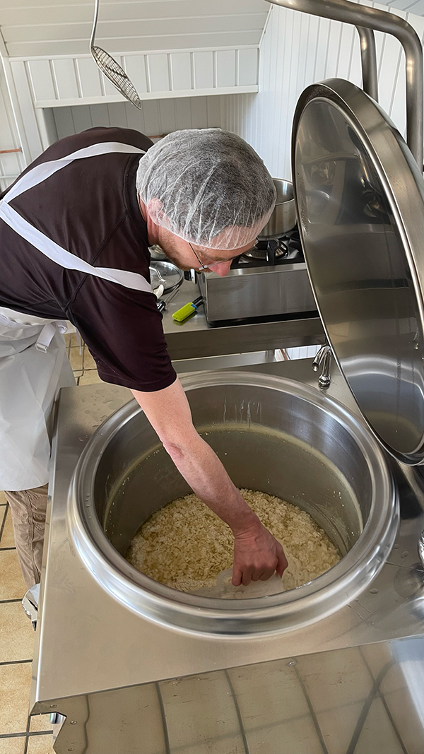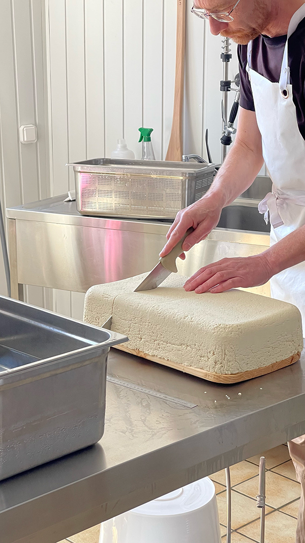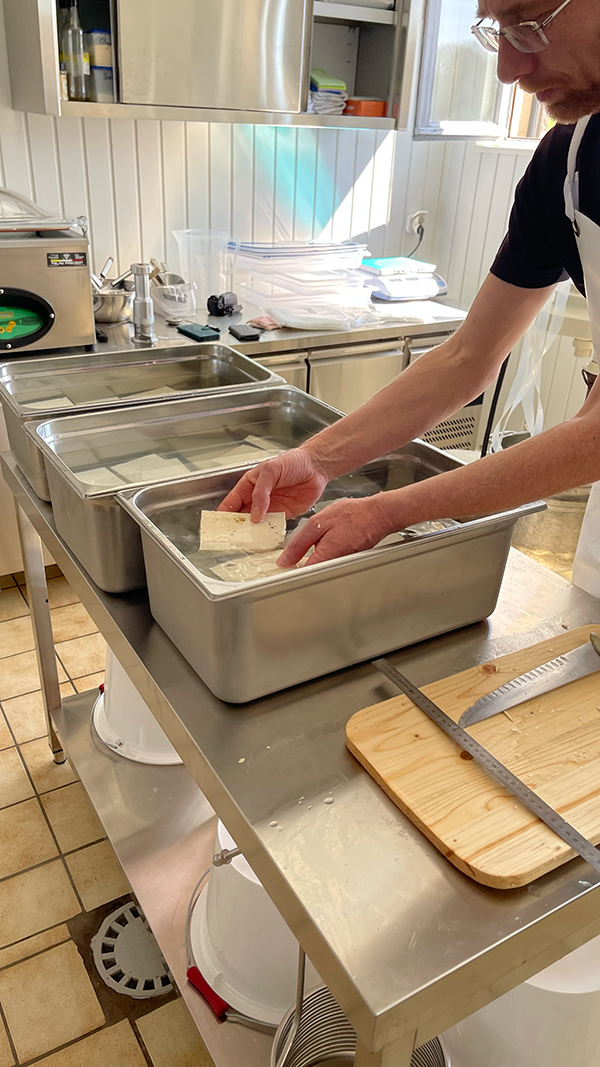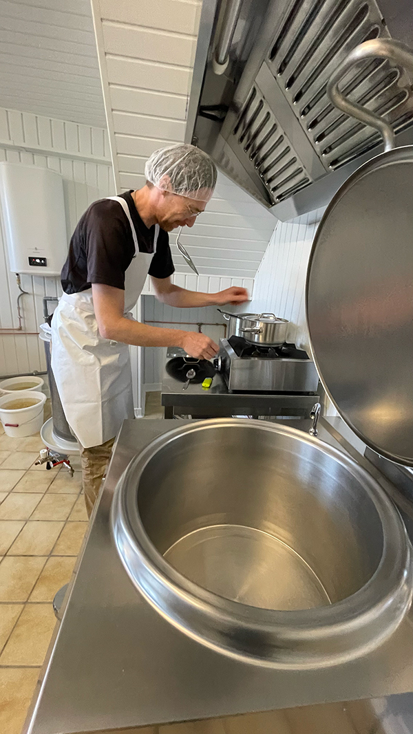 - Cuisson et caillage : Le lait est ensuite chauffé et caillé avec de la présure ( du nigari : sel marin naturel).