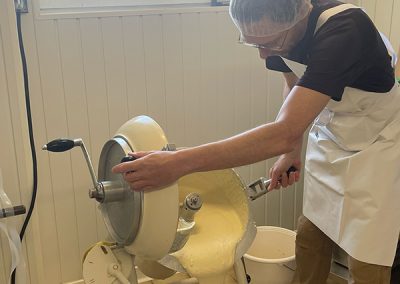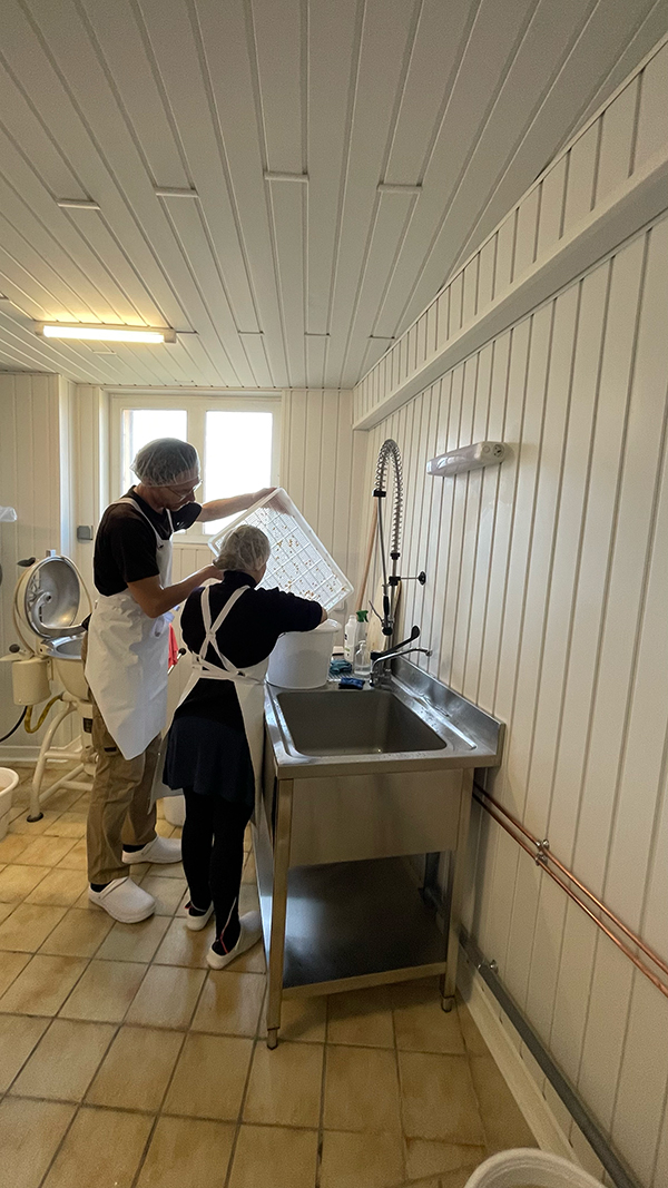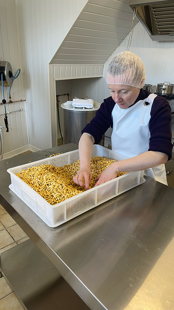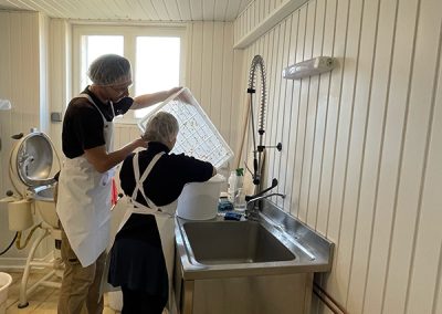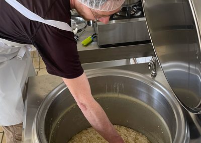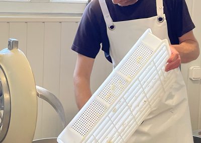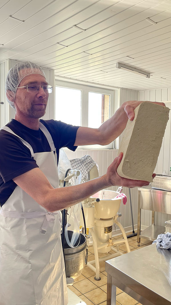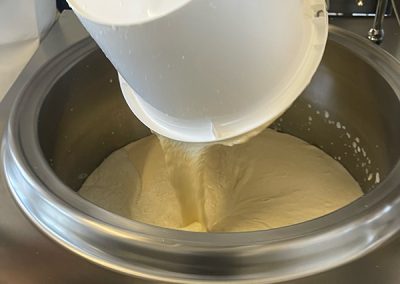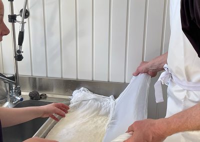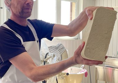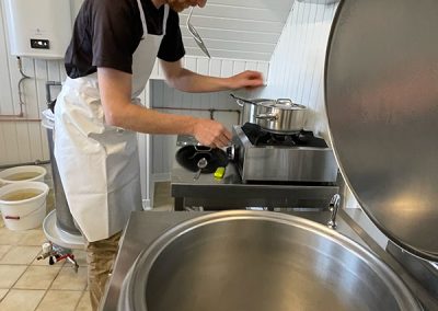 - Cuisson et caillage : Le lait est ensuite chauffé et caillé avec de la présure ( du nigari : sel marin naturel).