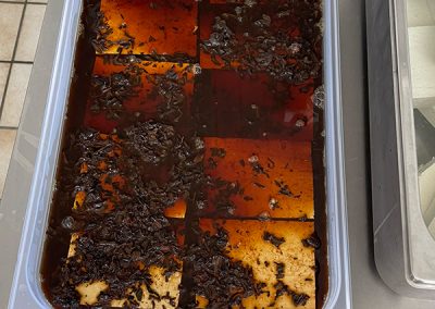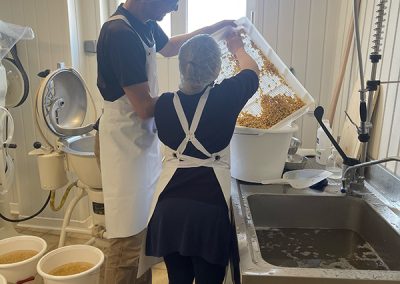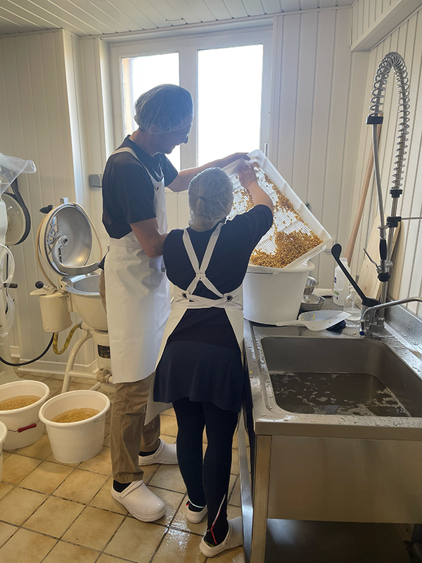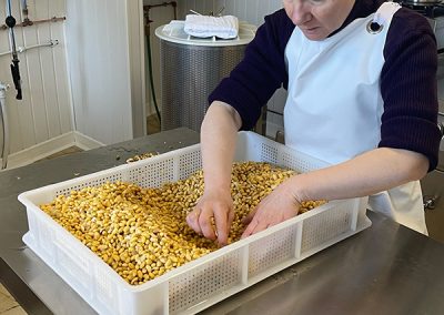 - Préparation des graines : Nos graines de soja bio sont pesées, lavées plusieurs fois, puis trempées dans de l’eau pendant 12 heures pour les préparer à la transformation.