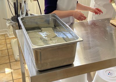 - Refroidissement et découpe : Le tofu est refroidi puis découpé en blocs d’environ 250 g.